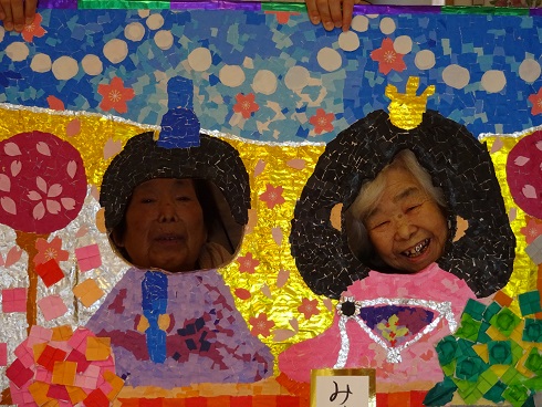 昼食には豪華な特別メニューを食べ、午後はデイサービスにて利用者様と職員で作成したひな壇パネルを使って、みんなで記念撮影しました♪